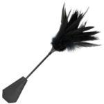 Double-sided riding crop with stimulating feather.